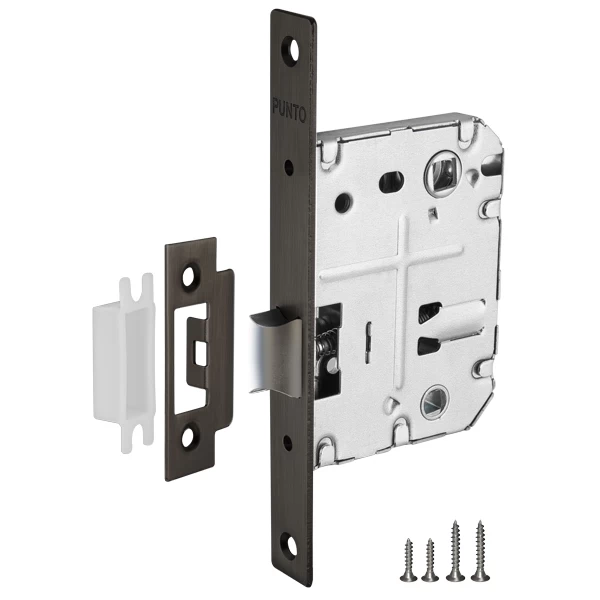 Дверные защелки Punto соответствуют высшему 4 классу надежности (250 000 циклов открывания/закрывания). Корпус изготовлен из высокопрочной стали. Лицевые элементы имеют надежное гальваническое покрытие. Комплектация: ответная планка, декоративная заглушка и крепежная фурнитура в цвет изделия.