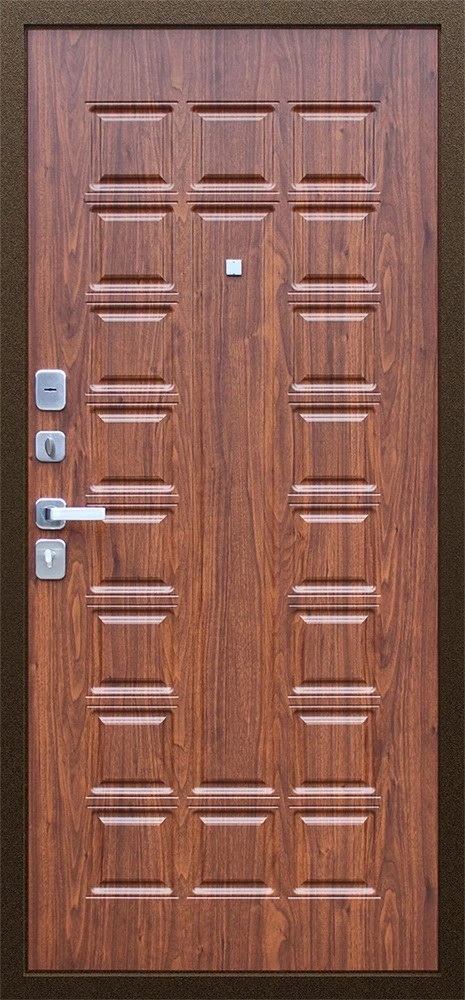 Надежная входная Дверь Спартак Орех темный премиум класса по цене 34 067 руб. Большая толщина стали защитит от проникновения в ваш дом, квартиру или коттедж. Используется очень качественная фурнитура: замки, цилиндры, ручки, защелки. Покрытие и отделка двери изготовлено под внимательным контролем производителя. Дверь имеет долгий срок службы и гарантию.