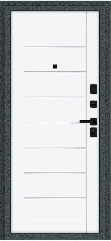 Надежная входная Дверь Браво Техно/SBlack Старк антрацит/White Silk премиум класса по цене 36 017 руб. Большая толщина стали защитит от проникновения в ваш дом, квартиру или коттедж. Используется очень качественная фурнитура: замки, цилиндры, ручки, защелки. Покрытие и отделка двери изготовлено под внимательным контролем производителя. Дверь имеет долгий срок службы и гарантию.