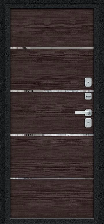 Надежная входная Дверь Браво Thermo Лайн/BChrome Букле черное/Wenge Melinga премиум класса по цене 47 067 руб. Большая толщина стали защитит от проникновения в ваш дом, квартиру или коттедж. Используется очень качественная фурнитура: замки, цилиндры, ручки, защелки. Покрытие и отделка двери изготовлено под внимательным контролем производителя. Дверь имеет долгий срок службы и гарантию.